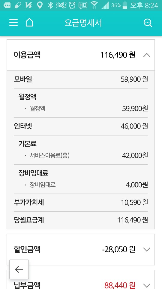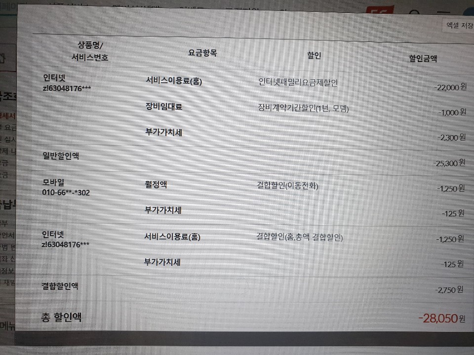 여동생 요금명세서2(할인내역)