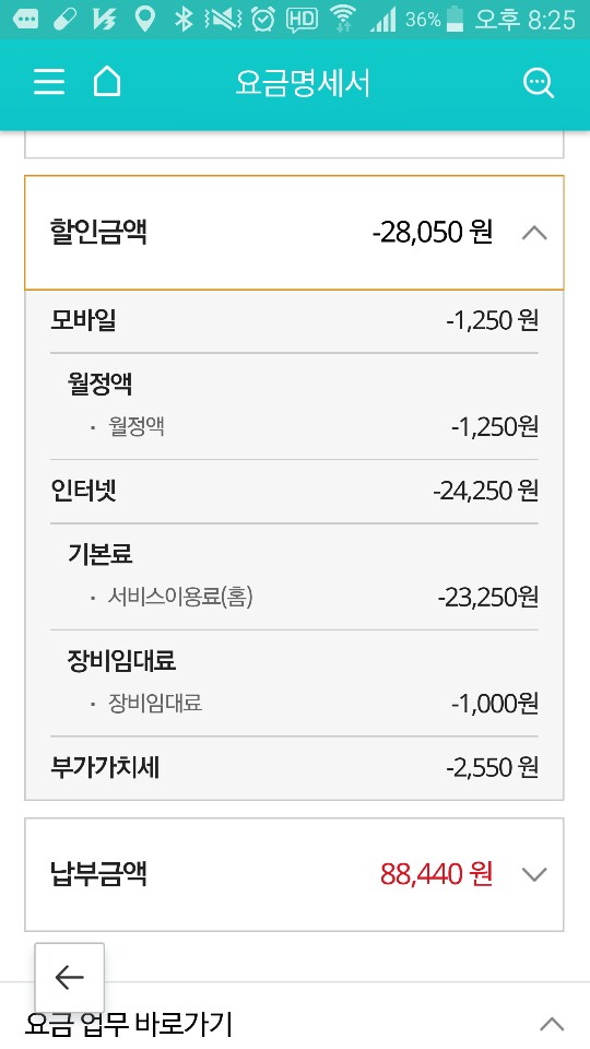 ⓓ 요금 내역 아래 검정색 네모박스 "할인상세 내역" 클릭