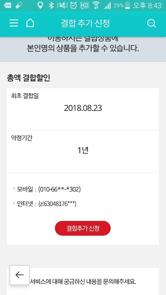 정확한 할인액은 결합 후 다음달 요금 할인액을 확인하시면 됩니다.)