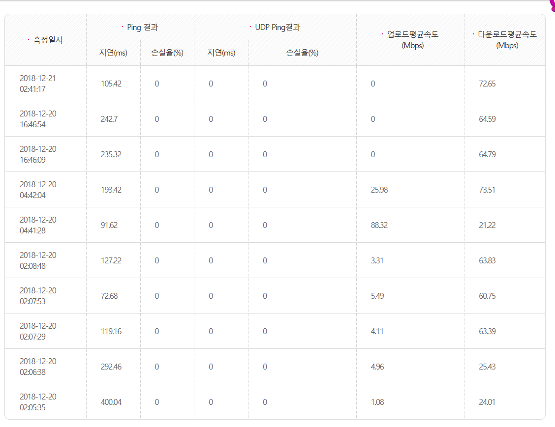 서울인데 지연시간이 100~500 나옵니다.