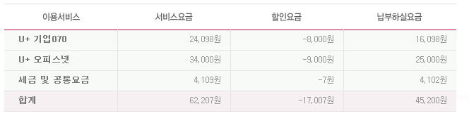 여기에서 LG 기업용 인터넷과 070전화를 사용 중이시구요~