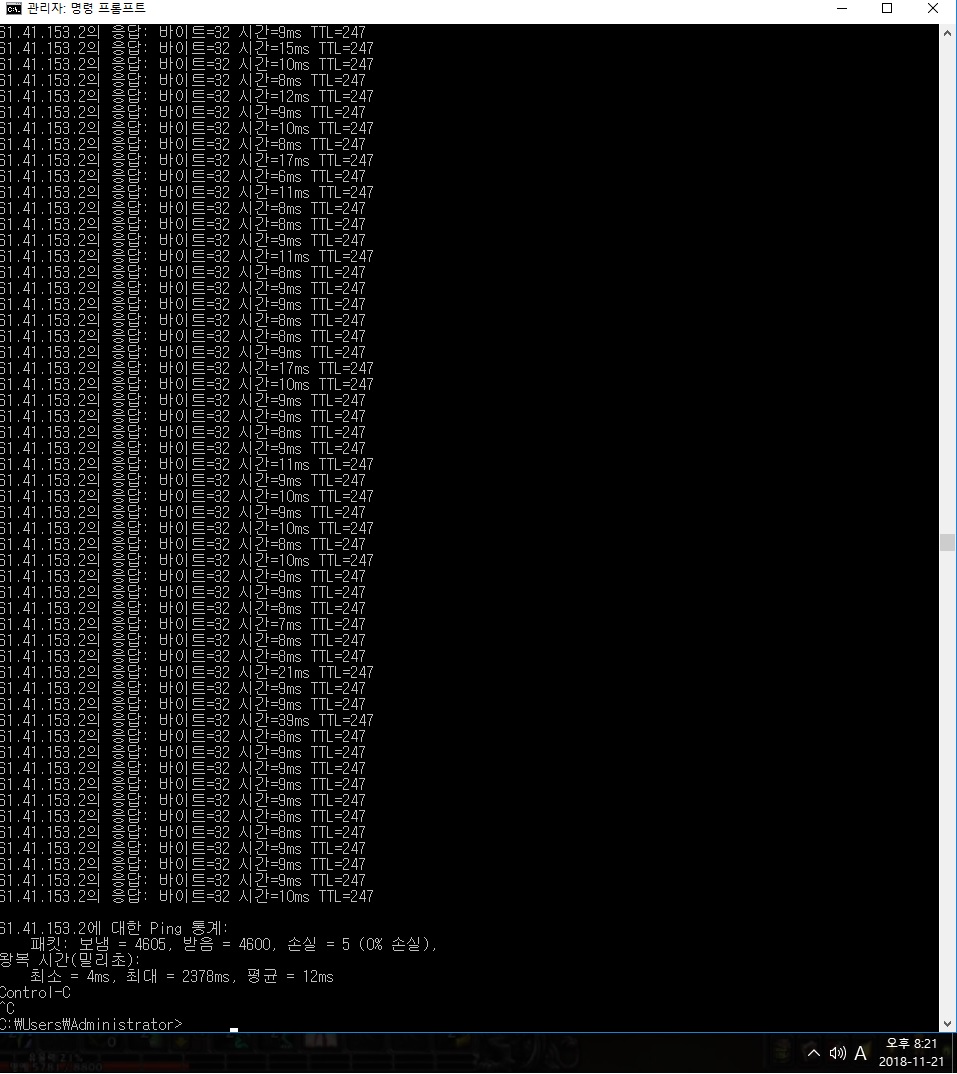 (핑테스트 최대 핑 2000~3000 ... 손실 5 ㅠㅠ)