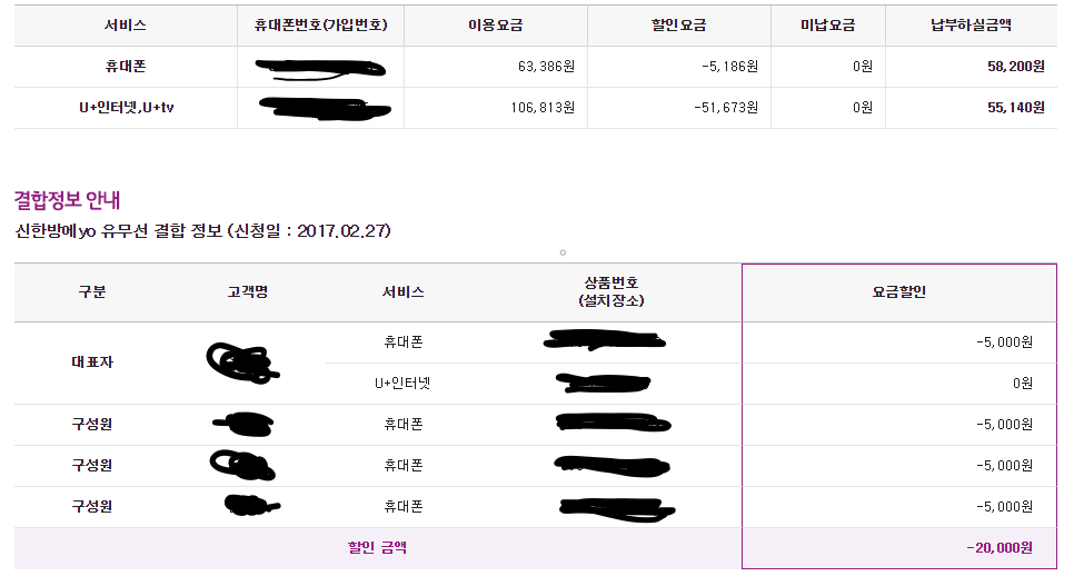 1회선 당 월 5,500원의 할인 혜택을 받고 계시는군요 :)