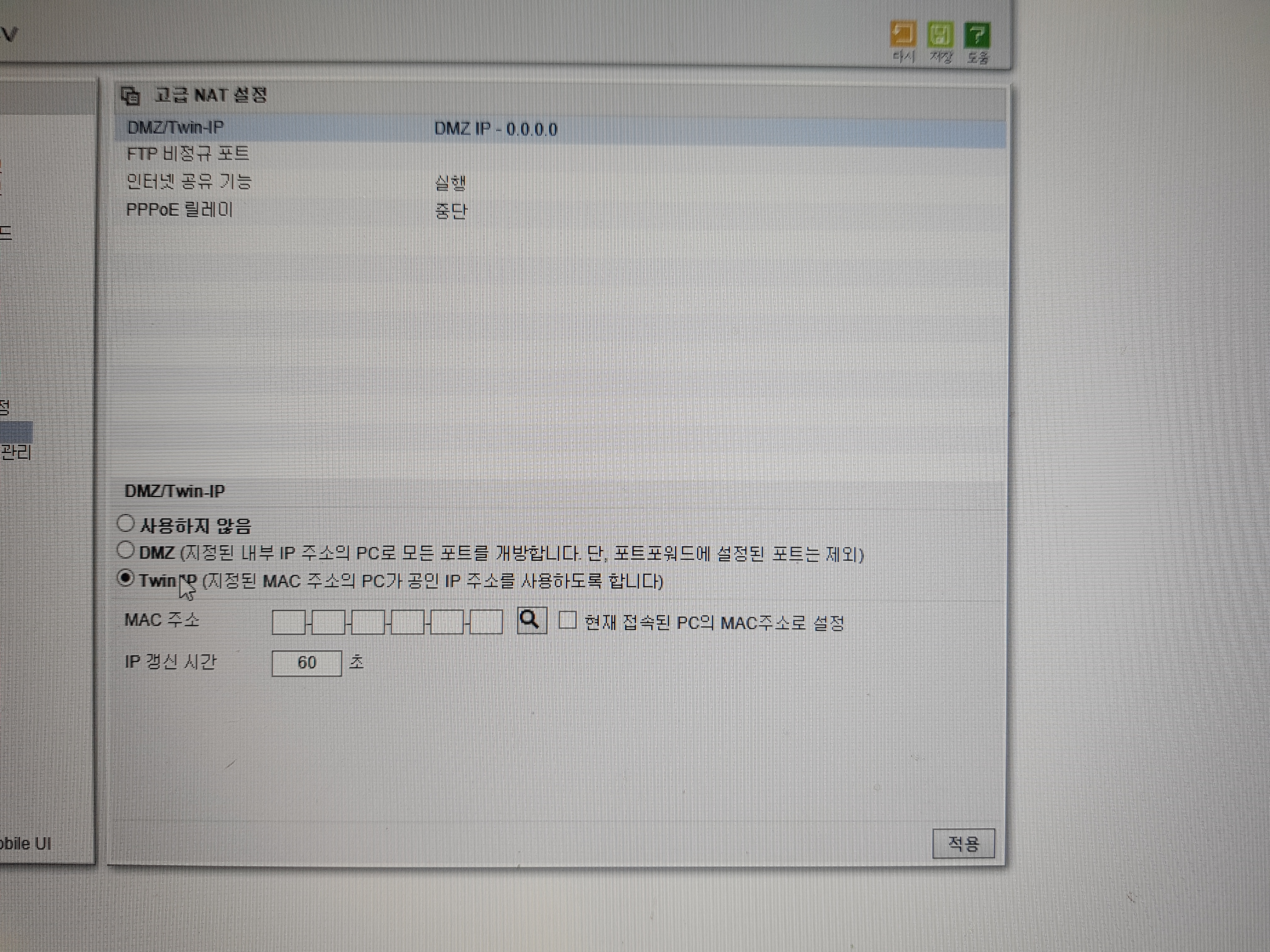 위에서 말씀드렸던 대로 공유기 설정페이지에  들어가서