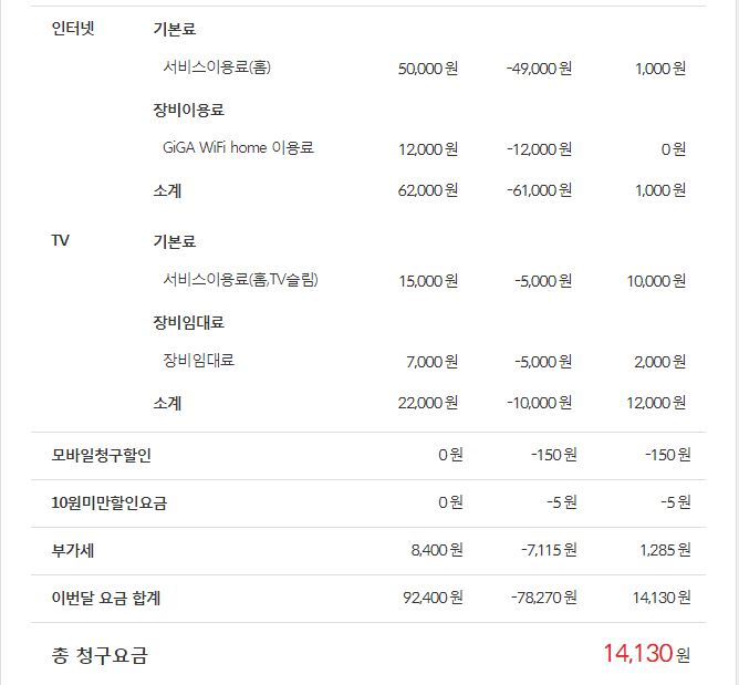 (위에 안내드린 요금은 기가지니 프로모션 요금이 적용된 것입니다~!)