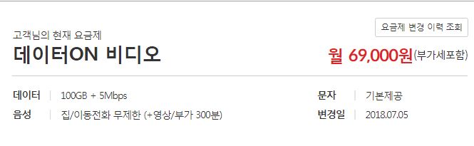 제가 지금 쓰고 있는 요금제는 데이터ON 69,000원짜리이구요.