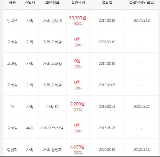 아래는 저희 가족들과 결합하고 있는 것들이에요.(인터넷뭉치면올레결합)