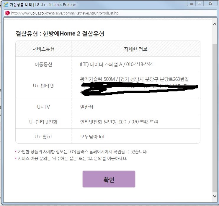 2) 이 중에서 LG폰 2회선은 스미뢰님 댁 LG인터넷과 한방에홈 결합중!