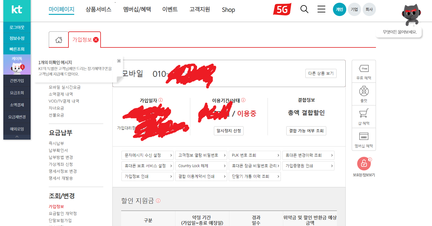 저 또한 KT 인터넷과 핸드폰을 사용 중이고