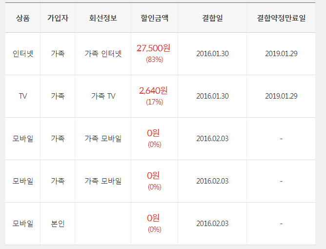 저희 가족끼리 KT 인터넷뭉치면 올레 결합할인을 받고있는중인데
