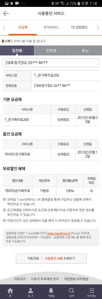 현재 SK 인터넷 + TV 3대 + 집전화 사용중이십니다.