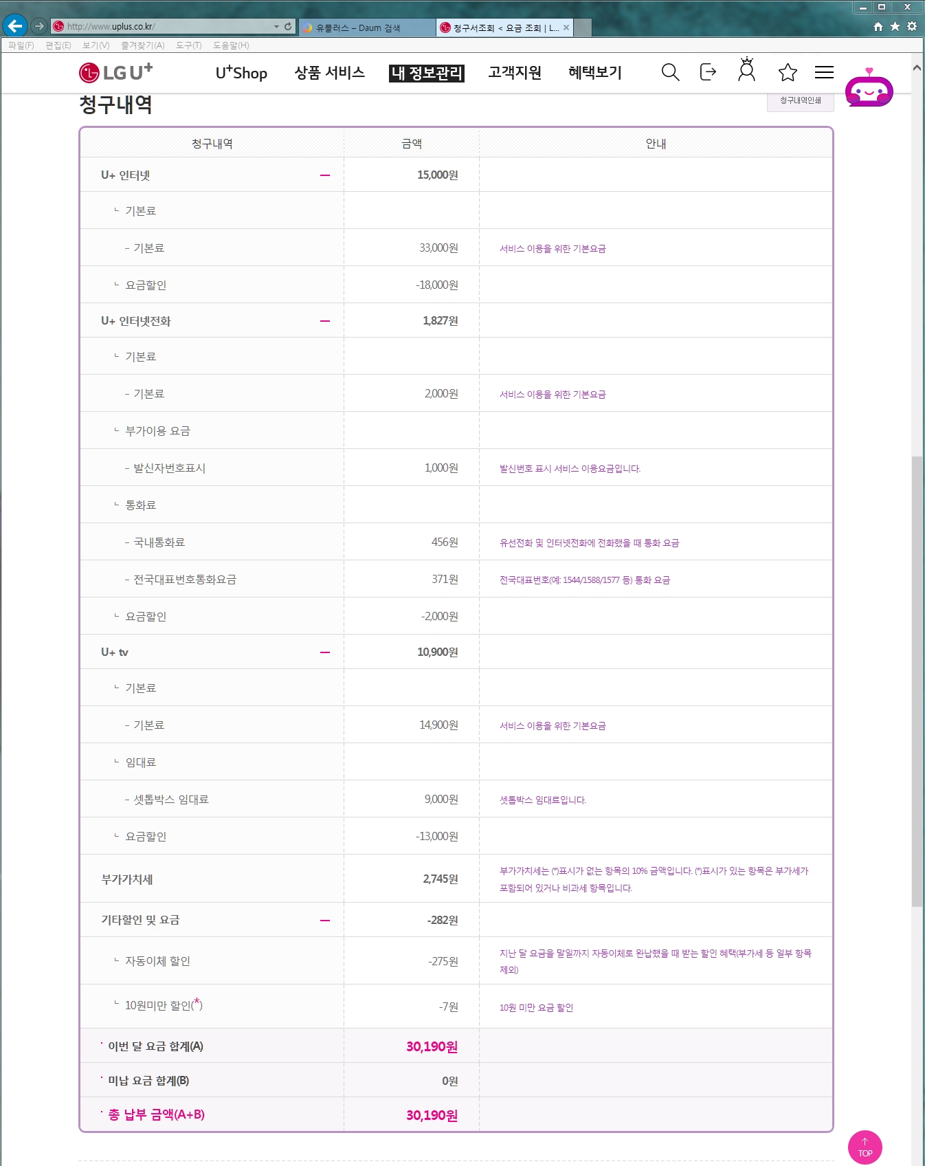 인터넷+TV +인터넷전화까지 합해서 이번달 요금이 30,190원인데???