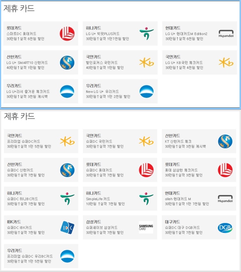 (위 : LG 제휴카드 / 아래 : KT 제휴카드)