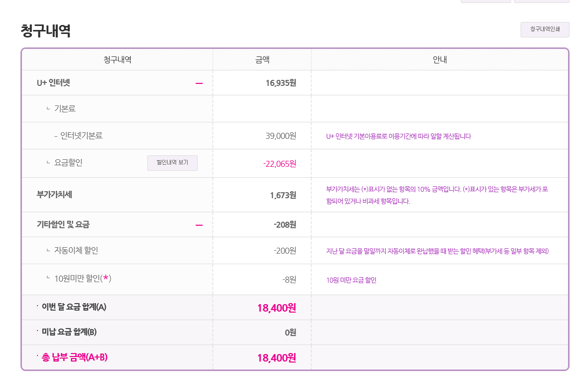 적용된듯 하옵니다만 요금이 18,000원대로 청구된 이유는