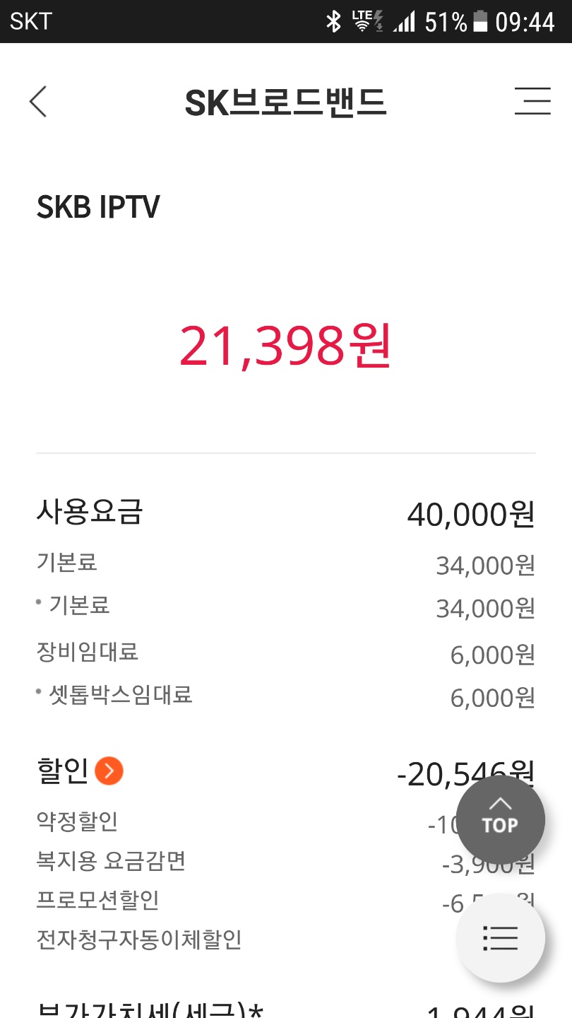이렇게 사용하시면서 월 41,544원(VAT포함)으로 사용하시는 것 같습니다.