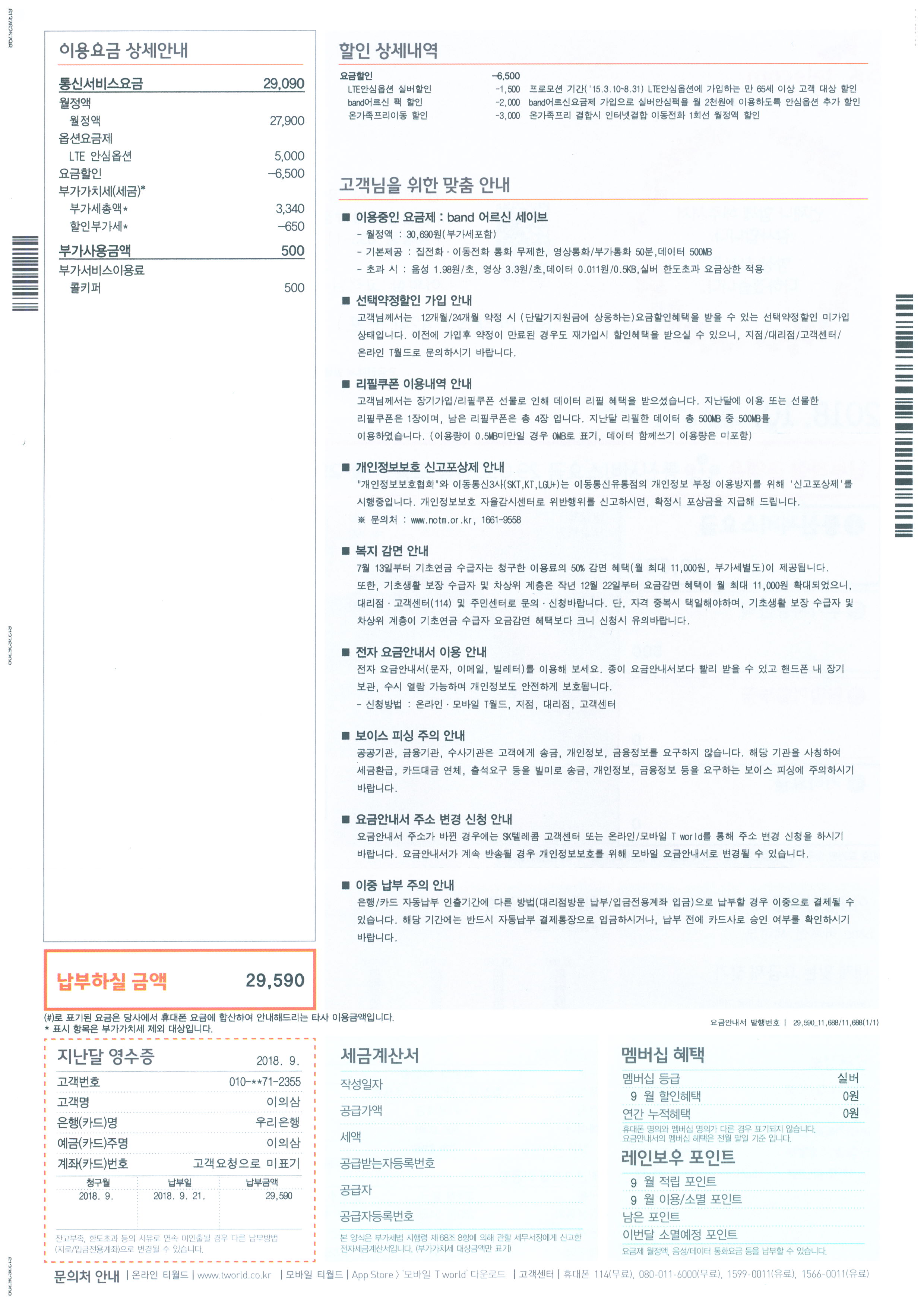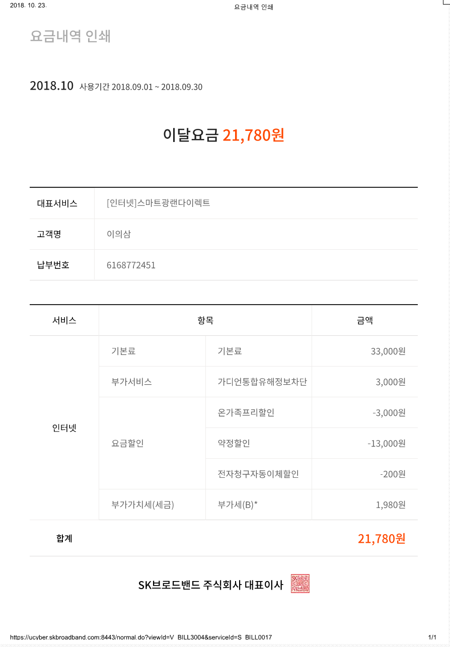 별도로 안양에 아버님 명의의 SK인터넷 이렇게 총 3회선을 쓰고 계셨네요.