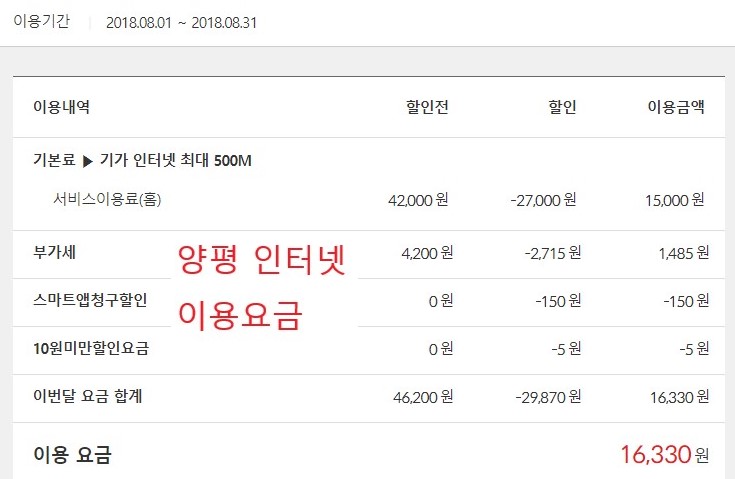 열한번째로 양평 인터넷 요금을 가져와봤습니다.