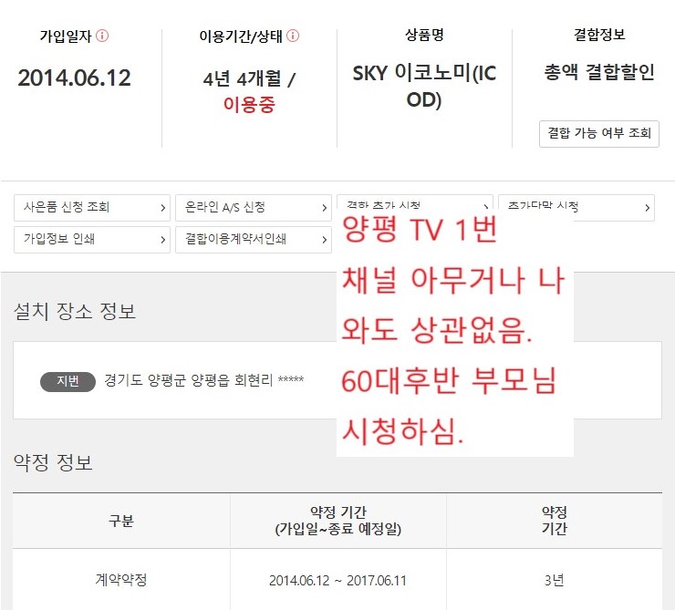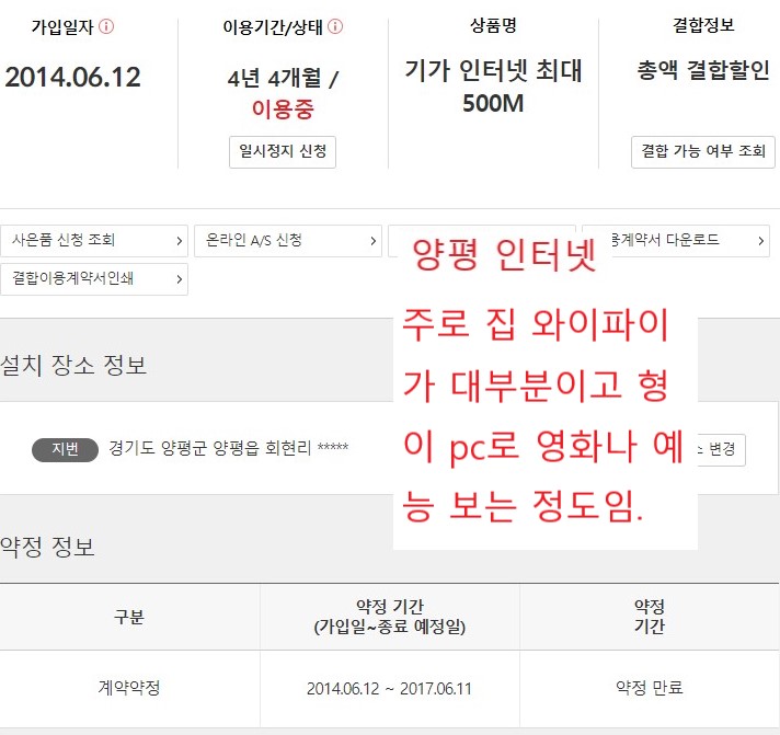 인터넷과 스카이라이프TV의 약정은 모두 종료되었지만,