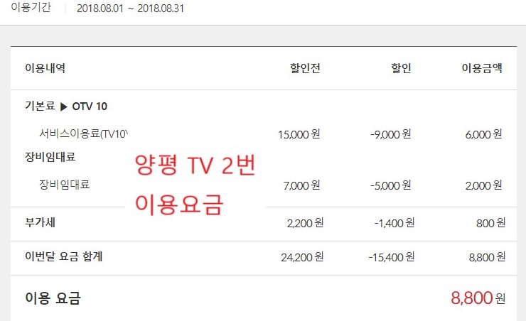 아홉번째로 양평 tv 2번 요금을 가져와봤습니다.