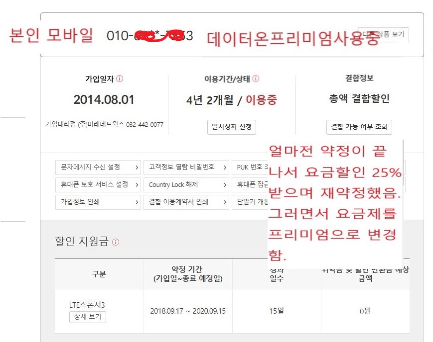 프리미엄 결합인가요? 그걸 했었거든요~ 기본료가 반값할인된다는 광고를 보고... 결국 해보니 반값도 아니었는데..