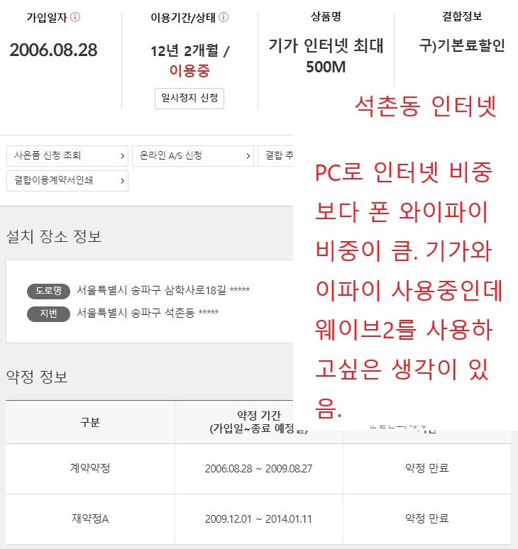 참고로 저는 석촌동에 살면서 tv 인터넷을 사용중이고