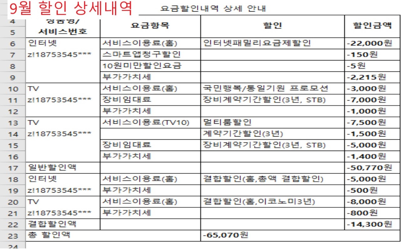 상품권까지는 아니어도 요금할인을 많이 받게 되었습니다~!!