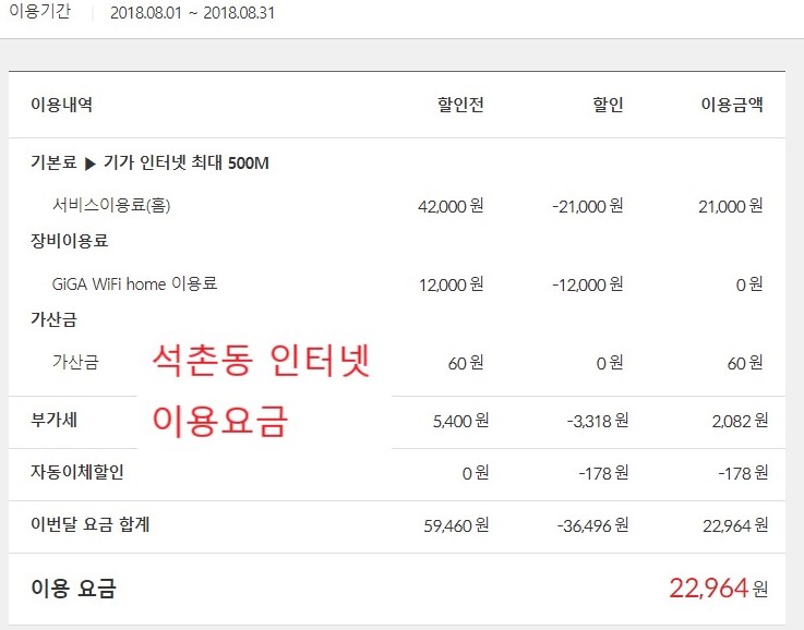 다섯번째로 석촌동 인터넷 요금을 가져와봤습니다.