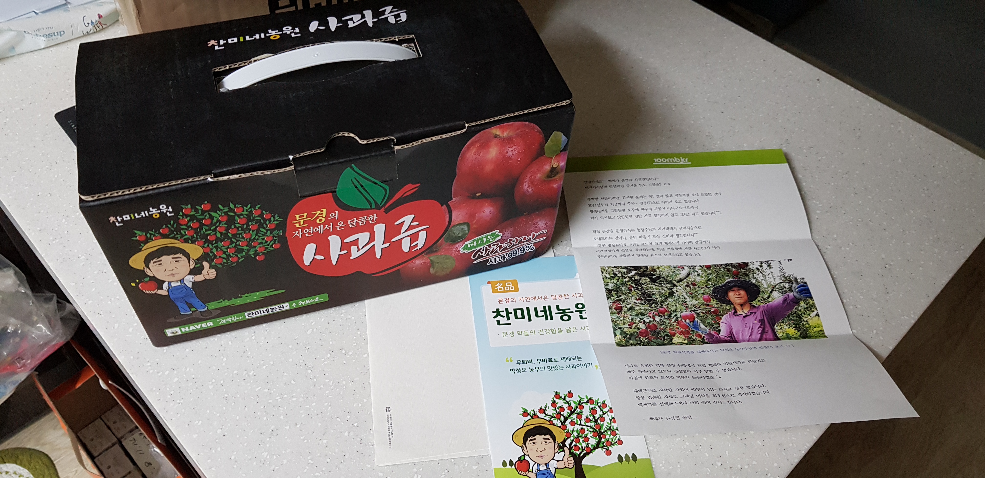 드뎌 사과즙 도착~~^^감사히 잘먹을께요.두루 번창하시고 또만날때까지 모두들 잘계시고 건강하세요.