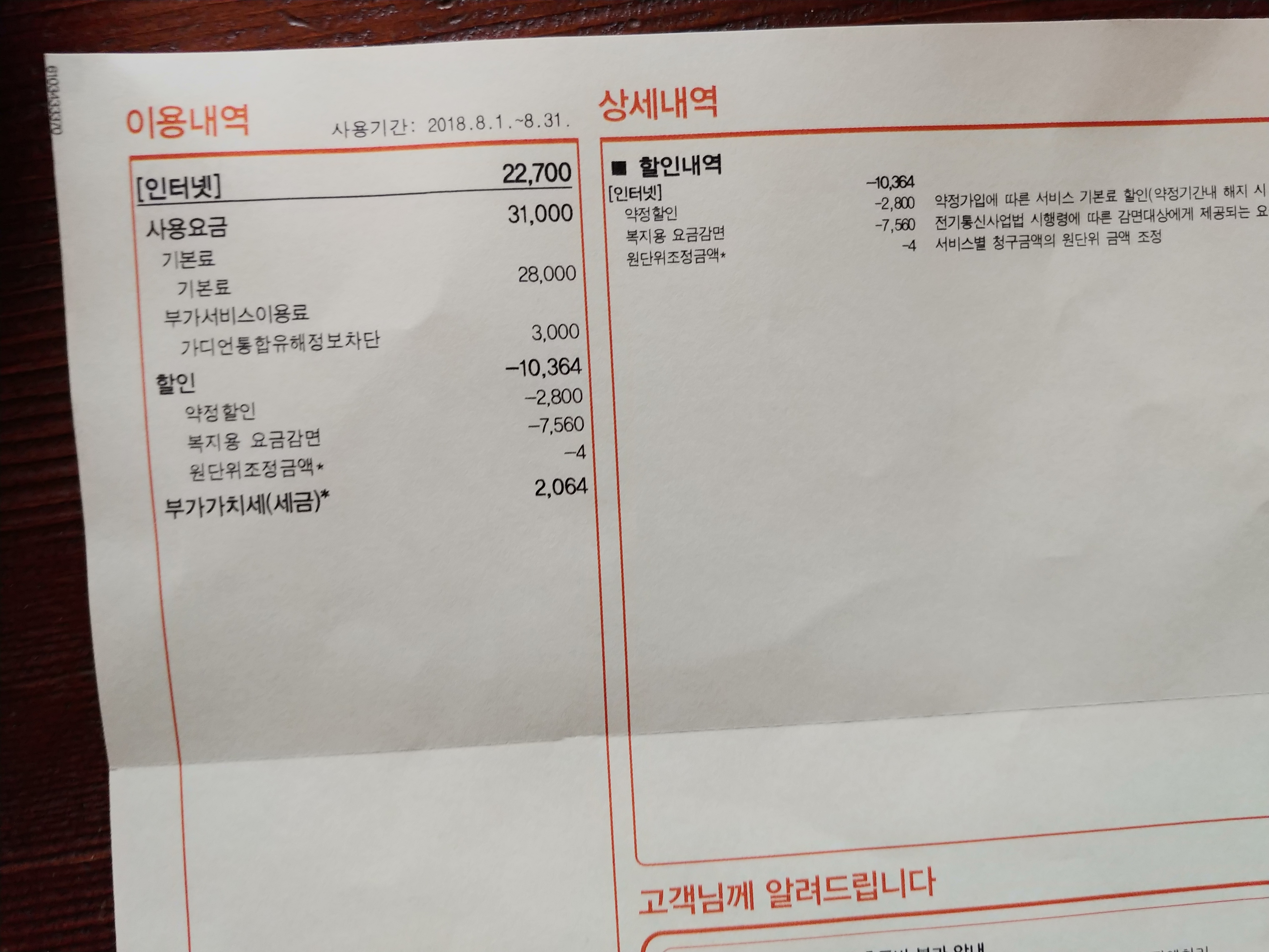 참고로..본래 100메가급 인터넷 요금이 22,000원이므로!