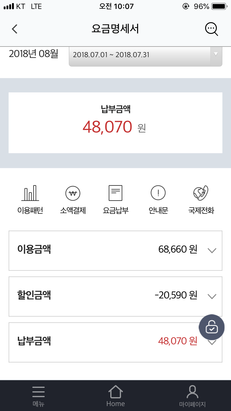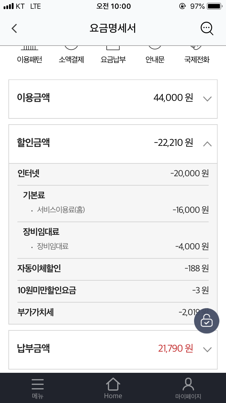 이와 별개로 핸드폰 요금에서 -3,300원 할인이 주어져