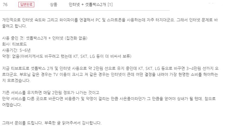 댓글 남겨주신 내용을 보니....KT를 알아보셨을 때에,