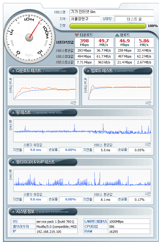 너무 느려서 기사님이 다시와주셔서 점검 받고 갔는데도 속도가 이렇게 나와요