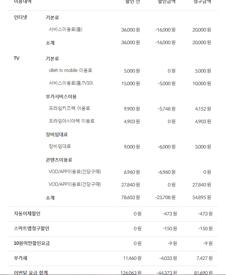 현재 사용하고 있는 요금은 하단에 첨부합니다. 자동이체라 연체있었던 적 없습니다.