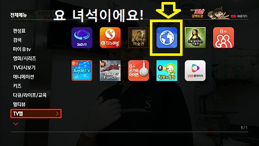 메뉴에 있는 [TV앱]을 찾아 눌러주십시오