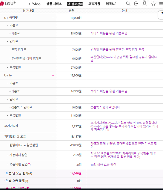 인터넷 약정만료 후 + LG본사와 재약정을 하시어
