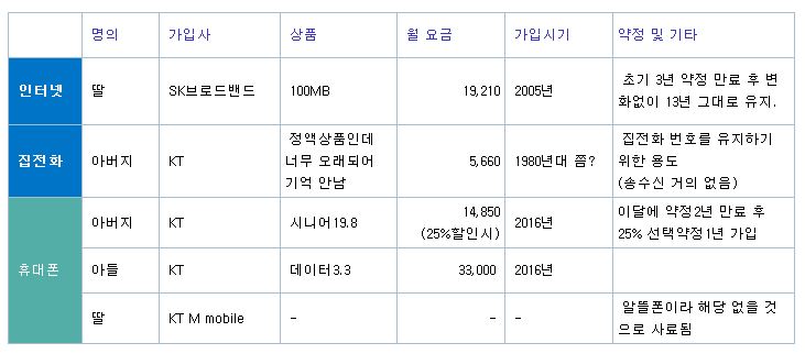 *인터넷+집전화 변경한다면 모두 아버지 명의로 하려고 함.