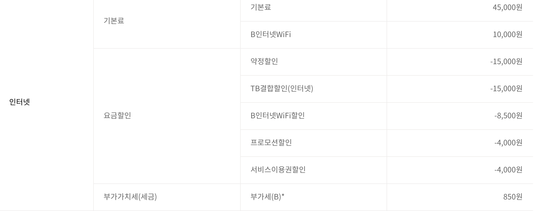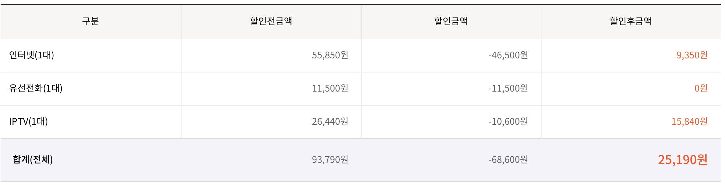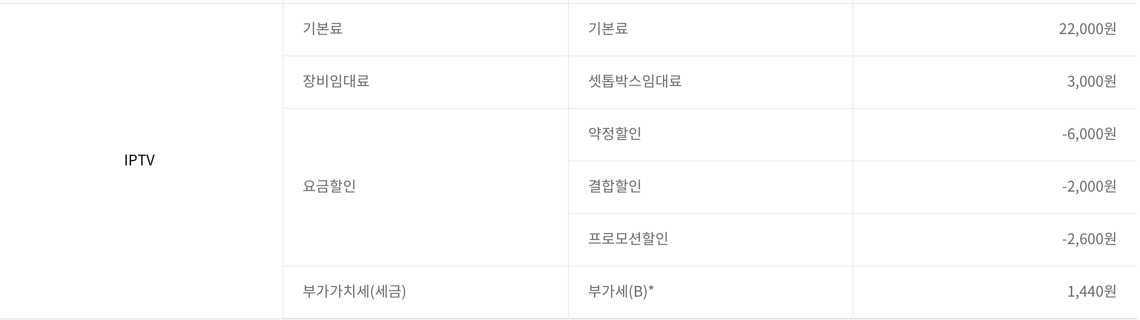 또한 IPTV는 정상적인 요금이라 보시면 되구요,