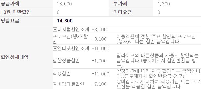 이 두개를 사용하고 있는데요, 총 13000원에 세금까지 더해 14300원에 이용하고 있습니다.