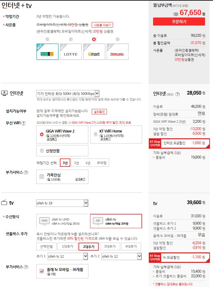 1. 우선.. KT 공식 홈페이지에서 봐주신 TV요금제(채널)는 비싼 거여서