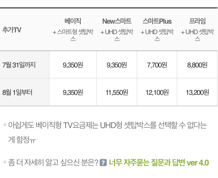 프로모션 덕분에 한 단계 낮은 일반셋탑박스와 요금이 동일하기 때문이에요!