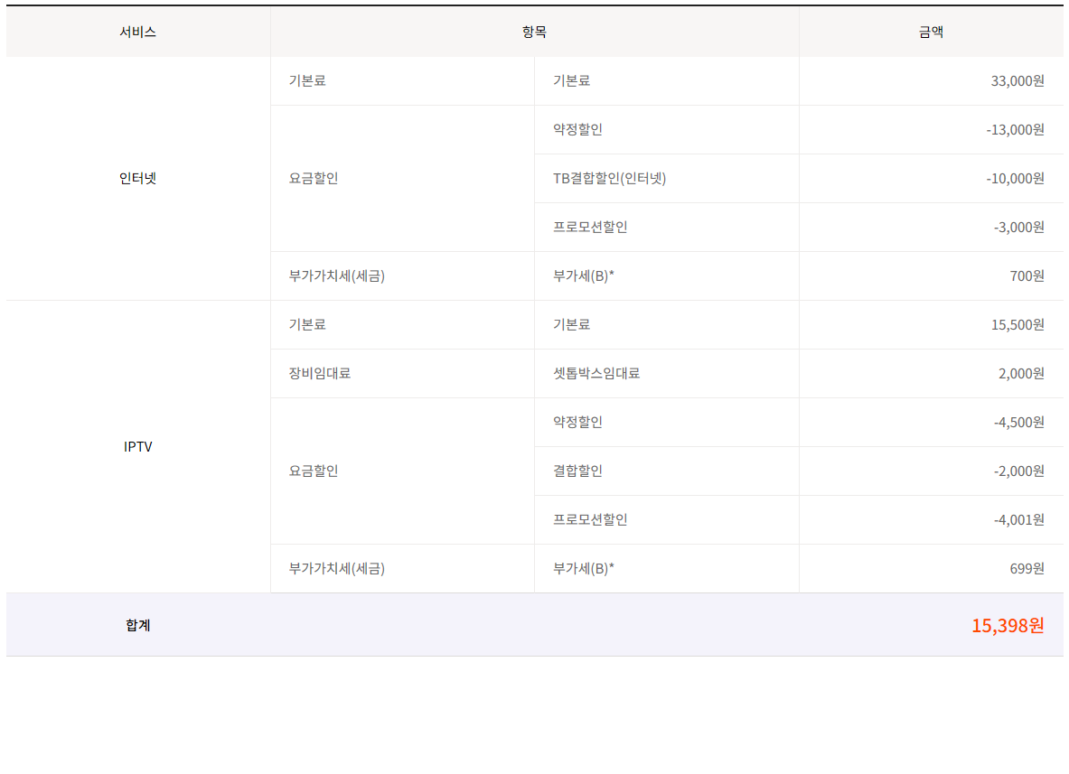 기본 베이스정보는 현재 온가족할인 50프로 받고 있습니다.(핸드폰5,인터넷2회선)