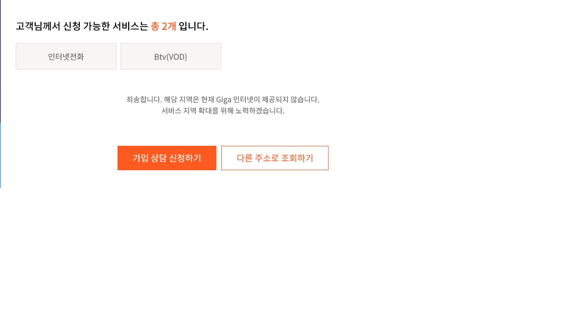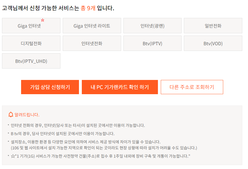 제가 SKB에 들어가서 현재 집주소로 인터넷 서비스 가능 지역을 확인 해 보니,