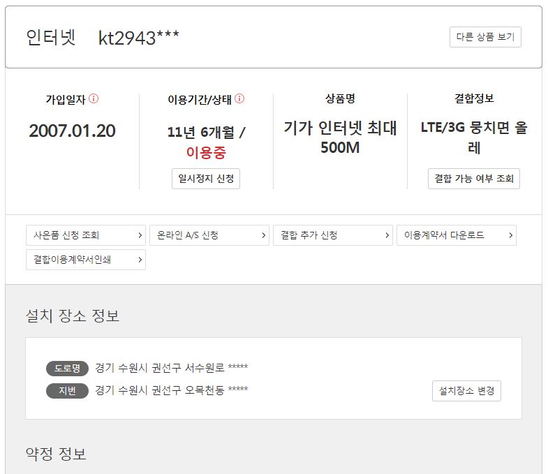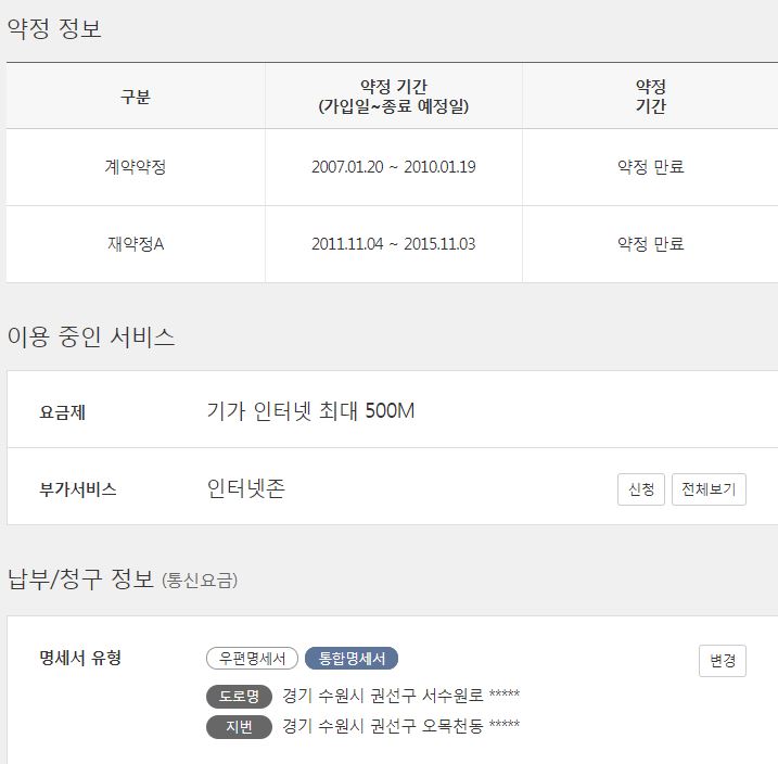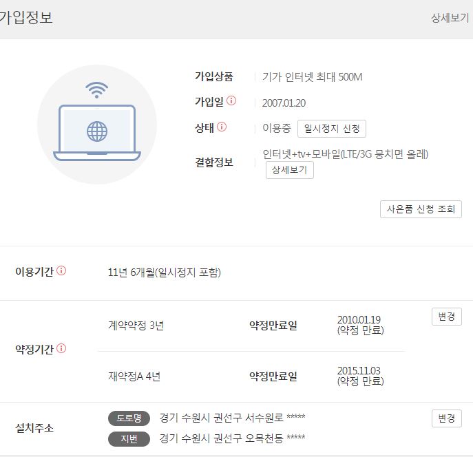 인터넷은 약정이 15년으로 끝났는데