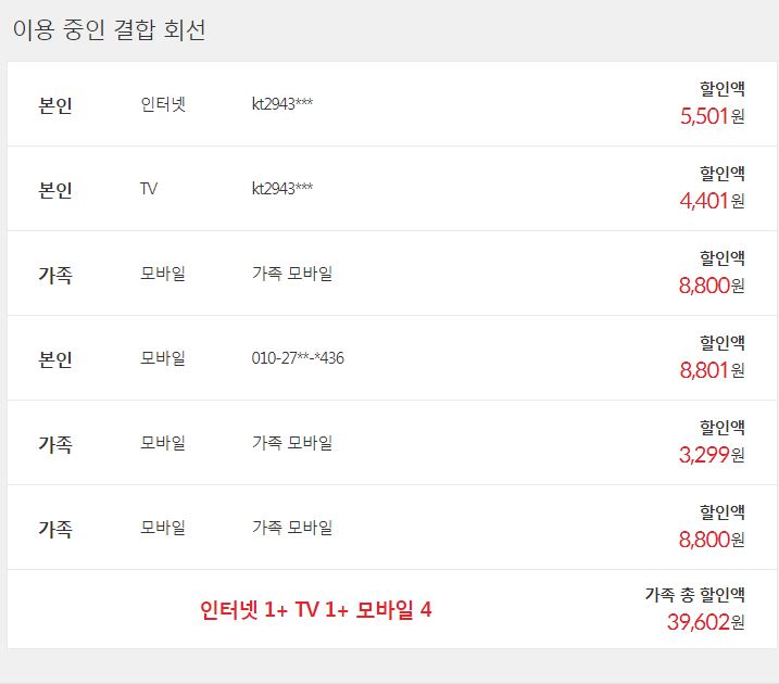 안녕하세요 10년넘게 가족전체가 KT 쓰고있어서 그동안 결합 할인을 받아왔는데요