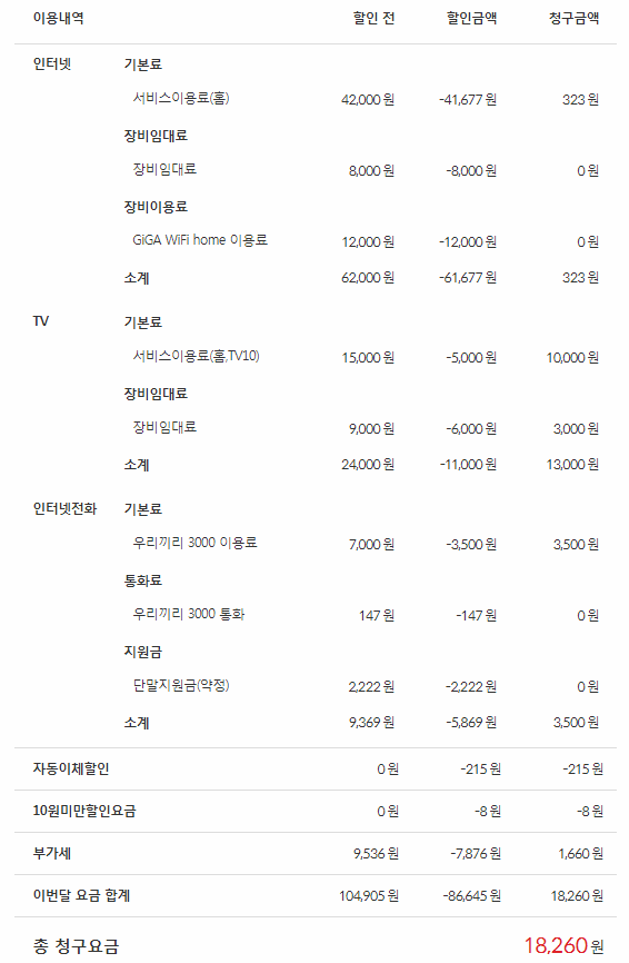 요금 할인을 팍팍 받지 못한다는 아쉬움이 있습니다.