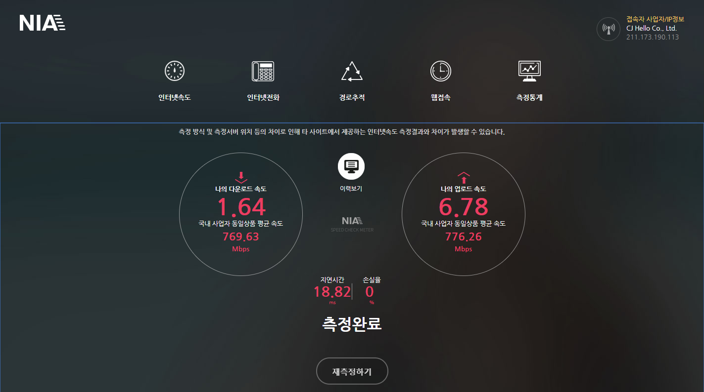 [참고 링크] 벤치비 인터넷 속도측정