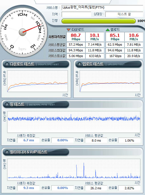 사실상 VDSL망에서는 나오기 힘든 좋은 품질이기에 큰~ 걱정은 없지만,