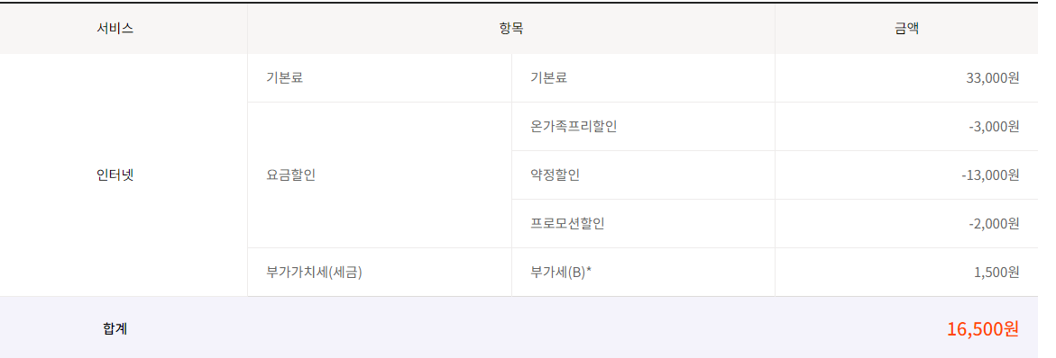 현재 sk를 매달 16500원에 이용중인데요 .(핸드폰 1회선 결합)