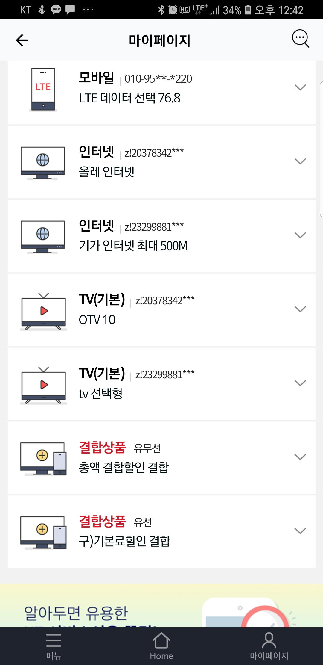 대전 : KT인터넷 + IPTV (약정 만료됨)