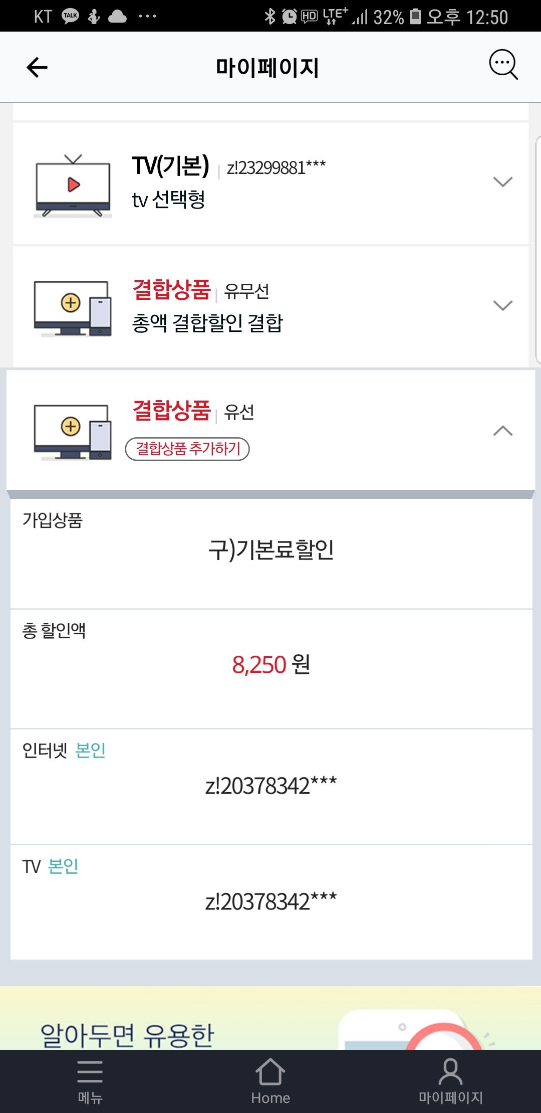 응당 받아야 할 결합할인 혜택 (약정할인 혜택 포함)~~!!